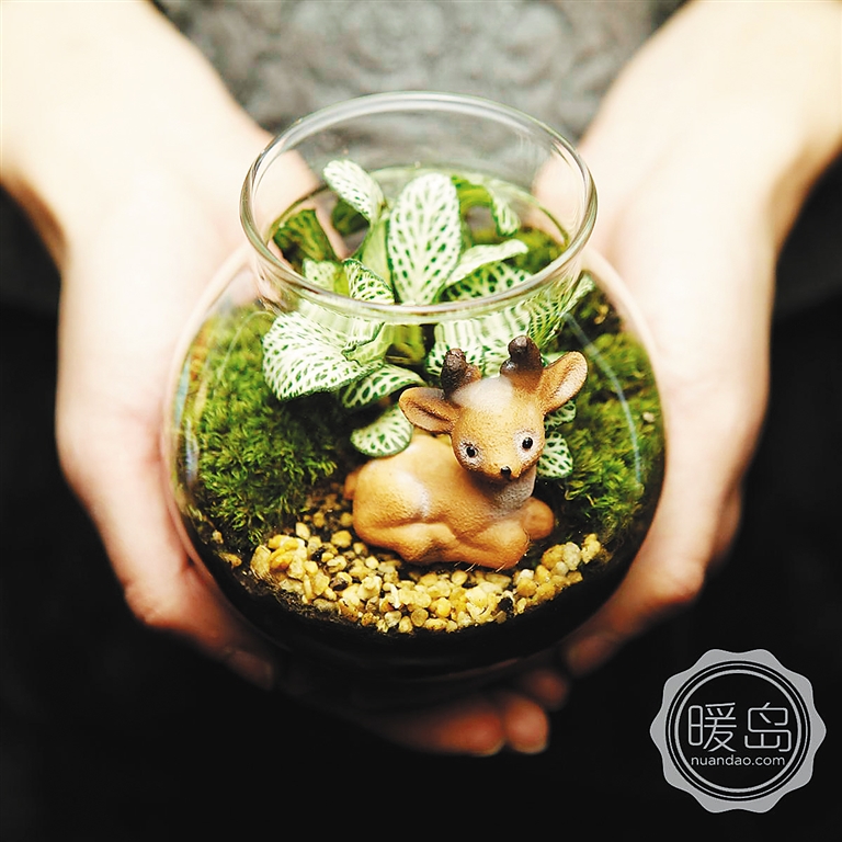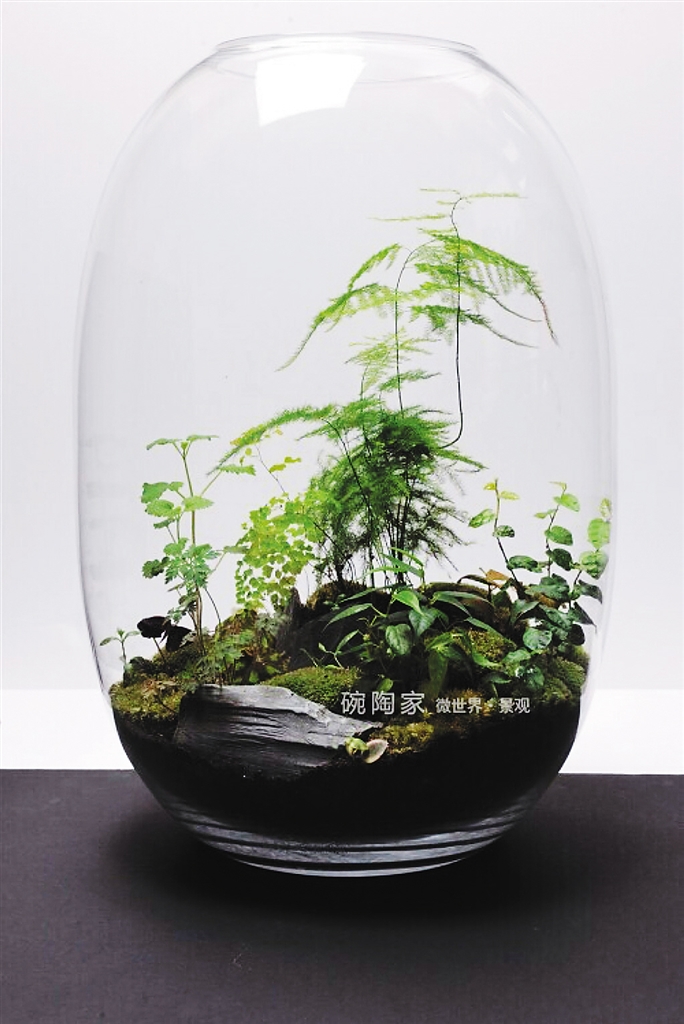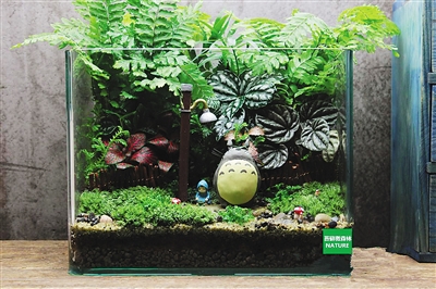 这种将苔藓、多肉、蕨类植物与蘑菇、栅栏、假山、卡通人物等盆景配件灵活组合的新型迷你艺术盆景,时下被称为“微景观”,正在都市白领、学生一族中悄然流行。