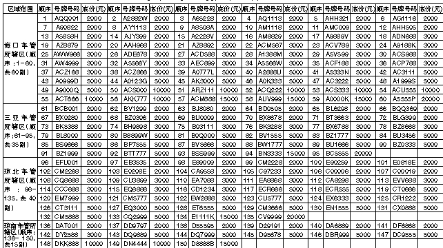 一、发放标的:琼A5555P等150个小汽车号牌,详细号牌及其竞价底价见附表。