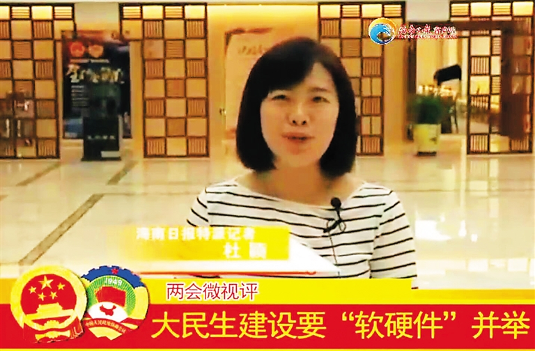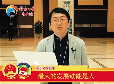 在南海网摄像记者的帮助下,这期《两会微视评》录制十分顺利,通过海南日报客户端发布后也得到了用户的关注和转载。令我没有想到的是,中国记协公众微信号《“融”报两会 看地方媒体怎么出招》,对海南日报报业集团全媒体捕捉海南元素点赞,配图就使用了我的《两会微视评》截图。