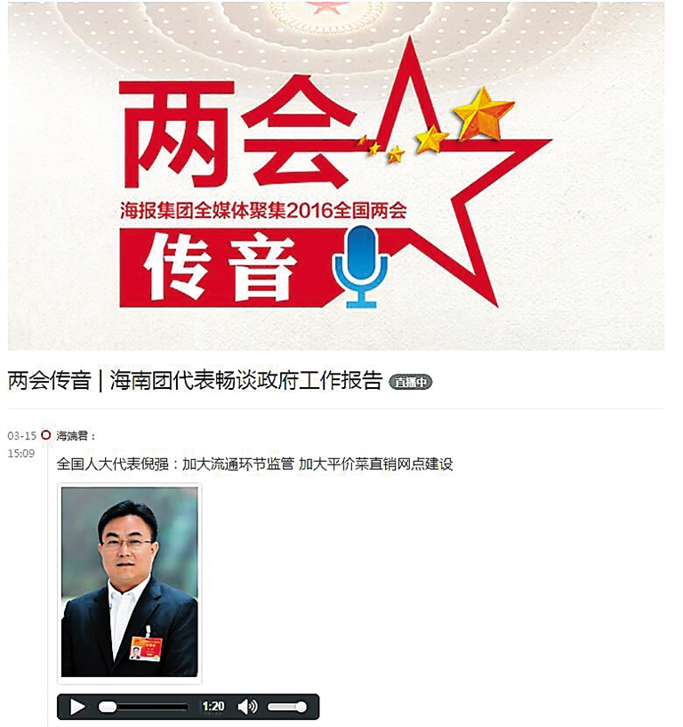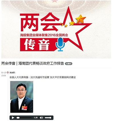 今年,海南日报客户端推出“问计开局·聚焦2016年全国两会”专题,首次推出了海南日报记者参与出镜制作的视频栏目《两会微视评》,多角度、全方位地报道两会。