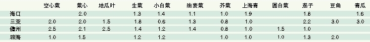 海南部分市县蔬菜田头收购价信息