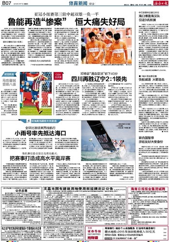 海南日报 体育新闻综合 019 2016-03-171 2016年03月17日 星期四