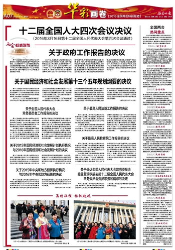 海南日报 华彩画卷2016全国两会特别报道 007 2016-03-171 2016年03月17日 星期四