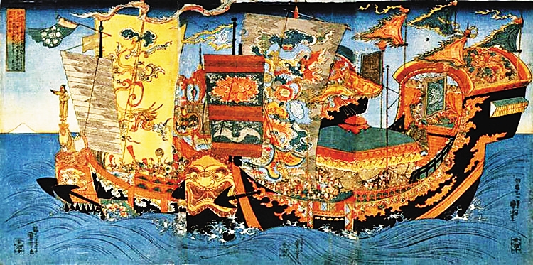 我国古代航海史上最伟大的事迹之一,是明代永乐三年到宣德五年28年间,郑和七下西洋之举。明成祖时派郑和出使东西洋各国,自公元1405年始,郑和共率领约2.8万人、两百多艘船只7次下西洋,历时28年,航程过万里。在中东方向,郑和船队最远航行到沙特阿拉伯的麦加城;在非洲方向,郑和船队最远航行到莫桑比克的贝拉港;历经亚、非30多个国家和地区,这一壮举标志着中国古代造船、航海的顶峰。