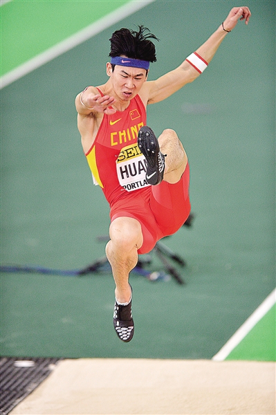 3月21日,在2016年国际田联世界室内田径锦标赛男子跳远决赛中,中国选手黄常洲以8.21米的成绩获得季军。 新华社发