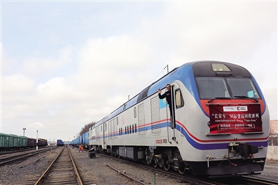 “长安”号装载着2000吨油脂从哈萨克斯坦多斯特克启程返回西安港,预计5天后抵达西安。这次“长安”号班列首次实现载货返程后,预计今后每年返程载货量将达到10万吨,实现了中国内陆与中亚地区物流贸易的有来有往。新华社发