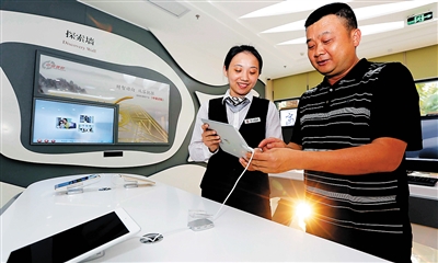 作为博鳌地区的首家智能化银行网点,中国银行博鳌支行围绕“智能化、网络化、互动化和综合化”建设目标,集中投放了自助银行、网络银行、移动银行、全息展示、体感互动、三维展示等交互式、智能化设施设备,融入创意服务方式,为客户提供更加智能、高效和更具体验性、趣味性的金融服务(见上图)。博鳌支行通过为博鳌年会提供更加智慧便捷的金融服务,成为中国银行展示国际化形象的一个重要窗口。