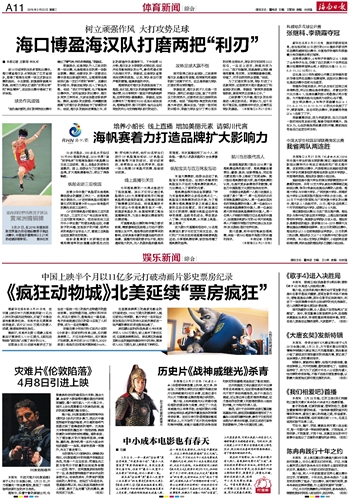 海南日报 体育新闻综合 011 2016-03-221 2016年03月22日 星期二