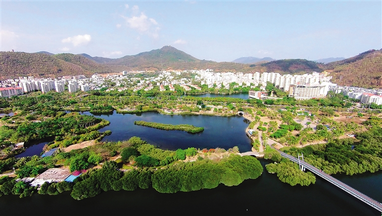 省委常委、三亚市委书记张琦说:“生态环境是三亚的核心竞争力,绿水青山就是金山银山。三亚唯一能与全国竞争的就是独特的气候、独特的地理单元‘山海河城’。我们要对‘一湾两河三路以及三亚的山’进行修复治理,守住这片山水,守住三亚的乡愁。”