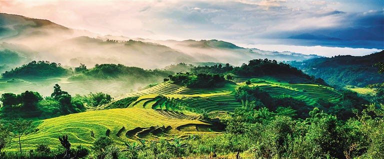 五指山市旅游市场呈现出的欣欣向荣的景象,一方面源于丰富的旅游资源。这里有“海南屋脊”之称的五指山,有中国最大的热带雨林之一五指山国家级自然保护区,有民风淳朴的原始黎族村落,还有独具特色的田园风光牙胡梯田。