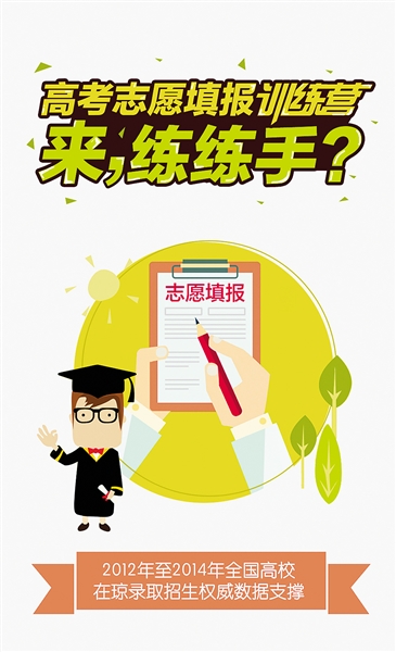 海南日报客户端“高考志愿填报训练营”正式上线,考生输入高考分数,即可查询到分数段内可报考高校,吸引了上万名考生练手。