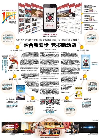 在逆势做“加法”增加纸媒版面的同时,海南日报成立新媒体部,通过改造党报的网络版,推出官方微信、官方微博和新闻客户端等,让报纸与新媒体进行深度融合,建立起纸媒+新媒体的“一体两翼”新格局,在新闻资讯传播和市场营销上同时发力。