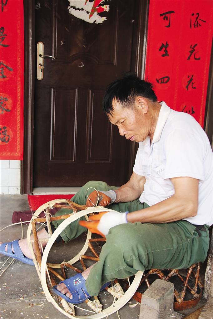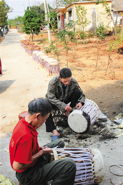 前来帮忙的村民中,72岁的林永深和71岁的韩亚齐都是做牛皮凳的能手,不过他们看上去都比实际年龄小,记者禁不住感慨当地水土养人。