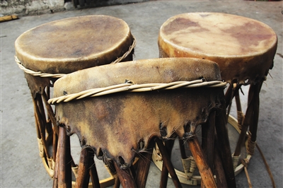 以上这些工序,一个人可以独自完成而不需要任何帮手。但最后绷上牛皮的环节,就需要团队合作了。
