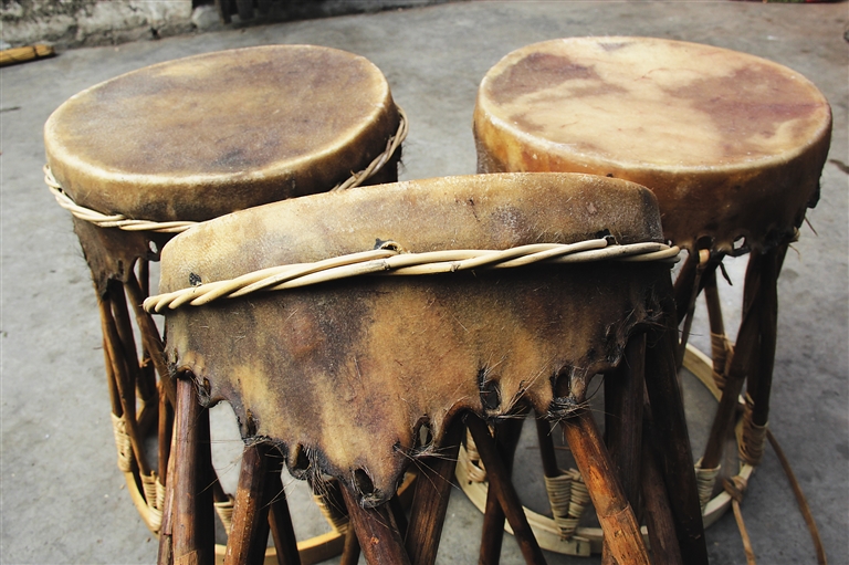 就这样,林亚遵拥有了此生的第一张牛皮凳,半个多世纪来,一直爱如珍宝。前两年,固定牛皮的藤条老化腐烂了,林亚遵才换上新藤。