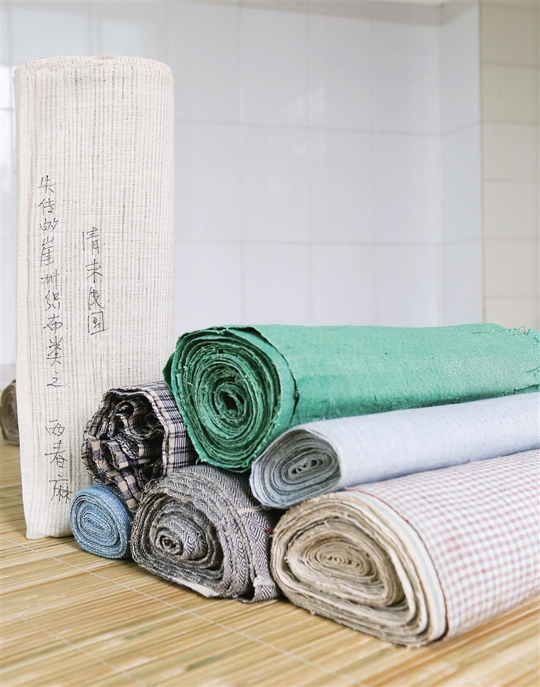 除了纯棉崖州布,周长征的收藏品种还有棉麻纤维混织的“二春麻布”。这种布料在用线上,以经线使用丝或麻线、纬线用棉线一起纺织而成。“二春麻”具有棉布吸水性好和麻布透气耐磨的优点,“但这项棉麻混纺的手工艺织技术,在清末民初就已经失传了。”说到这里,周长征语气中透露出惋惜。