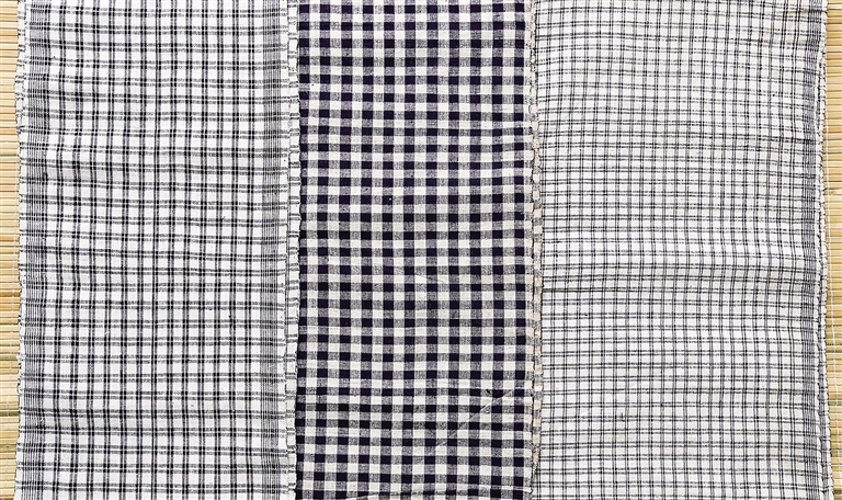 周长征收集的崖州布,最接近现代的藏品,也要追溯到民国。因为到了清末和民国初期,西方机器传入中国,棉纺织机械作业逐渐取代耗时又费力的传统手工拧线纺纱的劳作,工业棉线开始大量流行。同一时期的崖州布也多数选用工业棉线来纺织,“这时期的棉纺崖州布具有较密实平滑的质感特征,质地沉,名叫‘车子线布’、‘团线布’或‘番惠布’。”周长征说。