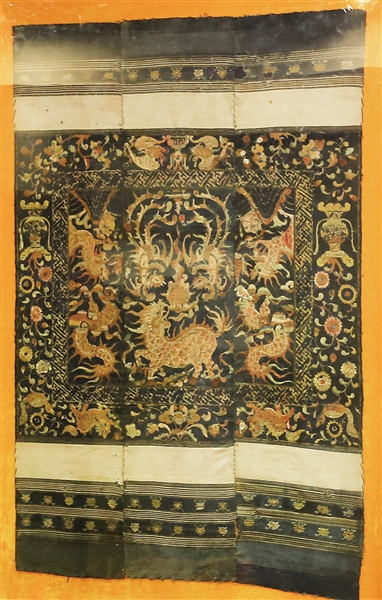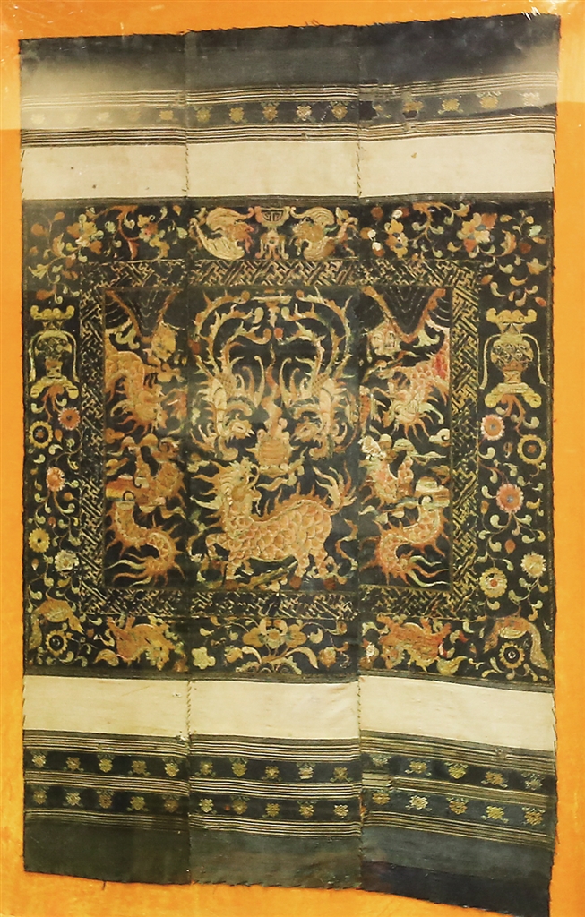 明清时期的崖州被,则出现了更多中原文化元素,如被面正中的图案多绣有龙凤图、鱼跃龙门图或麒麟图,主图周围及被的上下端,又点缀有各种吉祥花、鸟、藤纹。