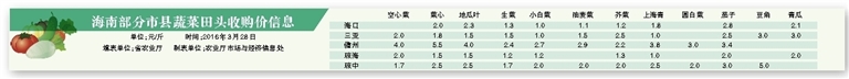 海南部分市县蔬菜田头收购价信息