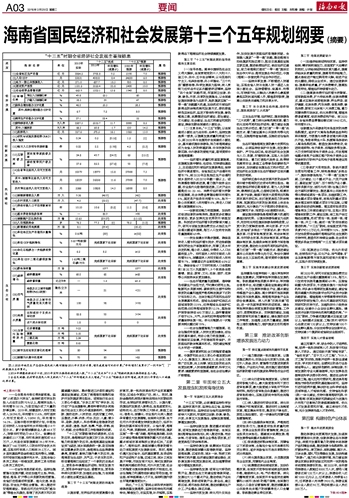 海南省国民经济和社会发展第十三个五年规划纲要(摘要)