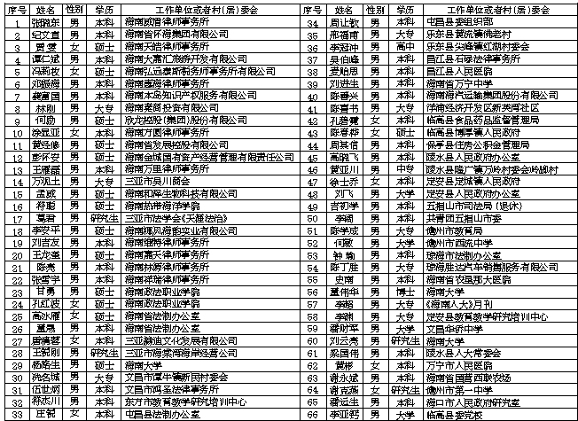 海南省司法厅关于新任省级人民监督员名单的公告
