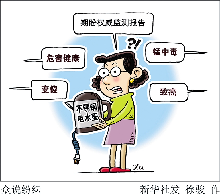 记者梳理发现,网文始于江苏省质监局3月17日发布的“2016年电水壶产品风险监测质量分析报告”。报告首段中指出,此次抽检发现的主要问题是“55.6%的电水壶产品锰含量在10%左右,存在使用高锰钢的问题”。