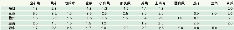 海南部分市县蔬菜田头收购价信息