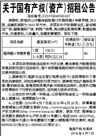 关于国有产权(资产)招租公告