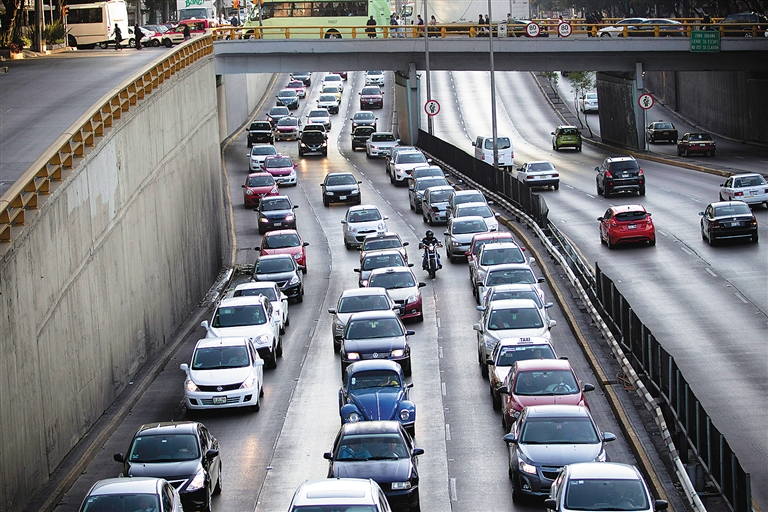 4月5日,车辆行驶在墨西哥首都墨西哥城的一条街道上。 最近一段时间,墨西哥首都墨西哥城及周边地区空气质量持续不佳。为此,首都墨西哥城及其周边的墨西哥州18个城市于5日起实施“史上最严”的限行政策。4月5日至6月30日,墨西哥城除公共服务用车和新能源汽车外,其他机动车辆全面限行。无论车辆废气检测结果如何,车辆根据车牌尾号,每周都需要限行一天,且每月还要限行一个周六。预计墨西哥城每天将减少100万辆汽车上路,而此前的限行措施每天能限制约80万辆车上路。 新华社发