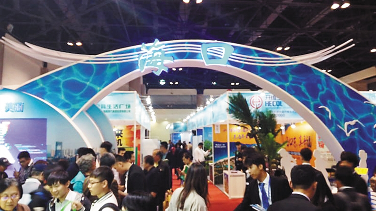 不仅布展引人注目,活动主办方、承办方在宣传方面做的大量工作也为海口“闪耀”北京展览馆打下了基础。记者注意到,除在海口组团展区设置大型LED屏、形象墙外,承办方还在房地产业界精英及媒体代表参与的中国房地产春季峰会现场搭建了形象广告墙,“海口”二字在展馆内格外醒目。