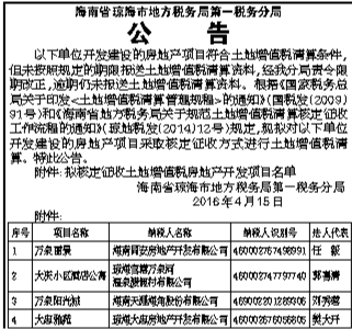 海南省琼海市地方税务局第一税务分局公告