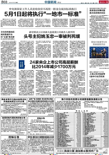 海南日报 中国新闻综合 011 2016-04-151 2016年04月15日 星期五
