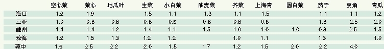 海南部分市县蔬菜田头收购价信息
