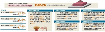 一季度,第三产业增加值占GDP比重为56.9%,比上年同期提高2个百分点,高于第二产业19.4个百分点;中、西部地区规模以上工业增加值、固定资产投资增速均快于东部地区