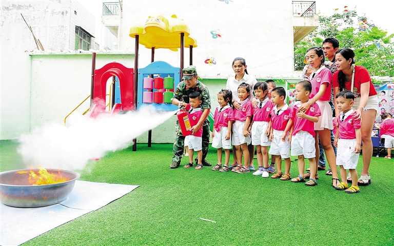 “遇到火警怎么办?”、“火警电话是多少?”为了让孩子从小学会自我保护,遇到火警懂得快捷、有效的逃生的办法,澄迈县消防大队与澄迈县小明星幼儿园合作,消防官兵走进幼儿园为师生进行了一堂生动活泼有趣的安全疏通消防演练活动。