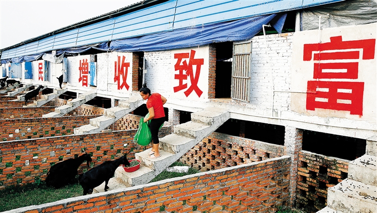 4月20日,在定安县定城镇平和养羊示范基地,农户正在喂养羊。据了解,该基地由政府出资进行前期建设,农民则通过到基地打工或以土地入股的方式参与其中。目前,基地每年可带来十多万元的纯盈利,极大地促进了当地农民增收。本报记者 张茂 摄