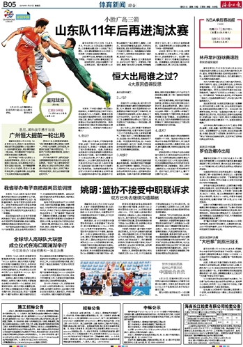 海南日报 体育新闻综合 017 2016-04-211 2016年04月21日 星期四