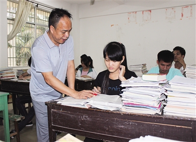 课余时间,如果有事找老胡,直接去高三年级办公室,总是能看到他那熟悉的身影在伏案工作。这是新州中学很多师生的印象。