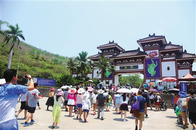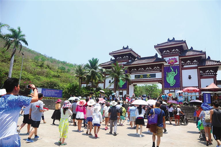 5月1日,游客在三亚南山景区游览。当天南山景区入园量1.63万人次,其中,散客达1.26万人次,成为南山景区一大亮点。此外,当天前往南山景区的琼、粤、桂等地自驾游车辆多达1850辆次。 本报记者 武威 特约记者 陈文武 摄