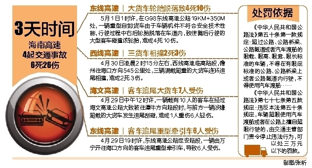 4月29日至5月1日,3天的时间,海南高速公路发生4起与大货车有关的交通事故,事故造成6死26伤。在这一连串冰冷的数字背后,是一个个家庭的破裂和悲痛。