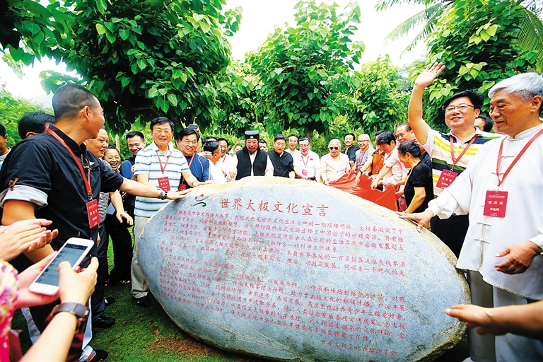游南山,品太极,会名师,于山海之间,共享天人合一的美妙境界,这是一场让全球目光聚焦到三亚的太极盛宴。文化节期间还发布了《世界太极文化(南山)宣言》,宣言由世界各地太极拳名家共同商讨拟定,倡导太极文化和太极健康理念,强调合作与发展,为人类健康做出贡献。随着“世界太极文化宣言”石刻的揭幕,也标志着太极文化落户南山、落户三亚。