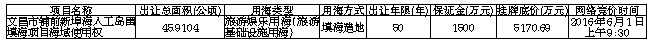 根据国家有关规定,经海南省人民政府批准,海南省海洋与渔业厅决定以挂牌方式公开出让文昌市铺前新埠海人工岛围填海项目海域使用权,现将有关事项公告如下:一、宗海基本情况: