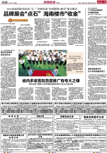 海南日报 海南新闻综合 009 2016-05-041 2016年05月04日 星期三