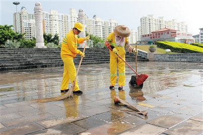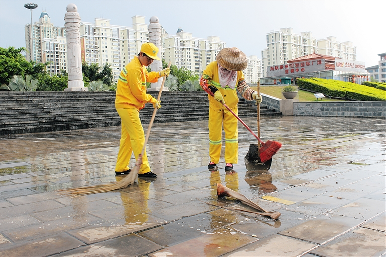 2014年“威马逊”“海鸥”台风来袭期间,谢群丽与同事一起,仍然按这张图表作业,一铲一铲地将漂在积水中的垃圾清除。正是有像她这样的一批环卫工日夜清扫,台风过后,那大城区很快就恢复了洁净。
