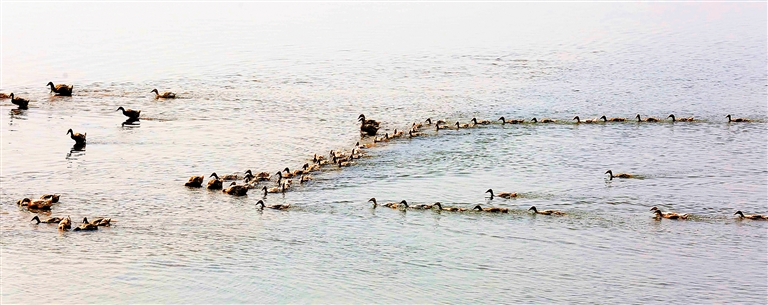 5月4日,在儋州市新州镇新英湾,一群群的跑海鸭在海湾里觅食。据介绍,儋州市新州镇近年来努力调优做精现代特色农业,积极发展畜牧业,培育出了一批养跑海蛋鸭专业村、专业户,并筛选出跑海鸭蛋作为地标性产品,打响知名度。本报记者 陈元才 通讯员 李诗学 实习生 陈若龙 摄
