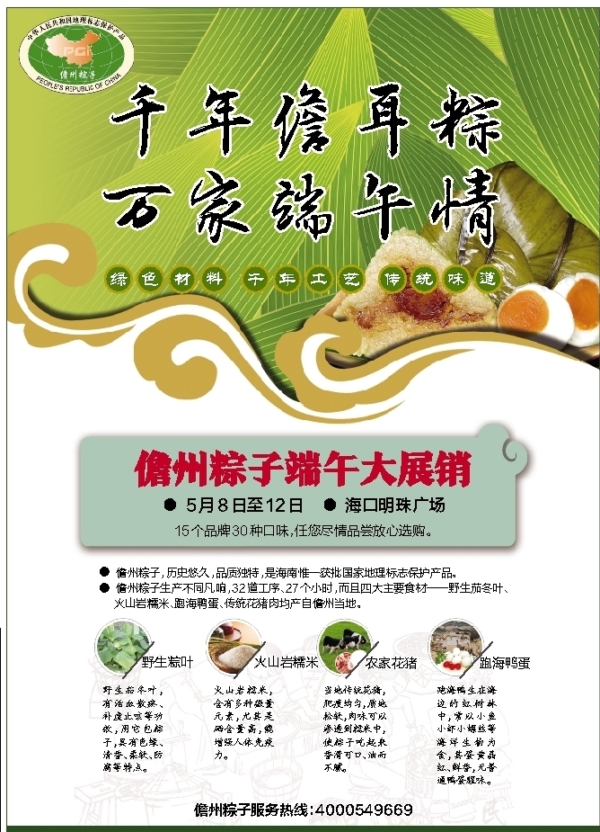 ● 儋州粽子,历史悠久,品质独特,是海南惟一获批国家地理标志保护产品。