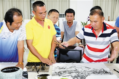 当天晚上,参加培训班的30多位学员在现场挥毫泼墨,以艺术家的独特视角,将白天采风寻找到的昌江之美以再创作的形式展现出来,并由受邀出席此次培训班的专家对作品进行现场点评和讲解。