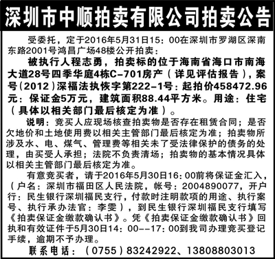 深圳市中顺拍卖有限公司拍卖公告
