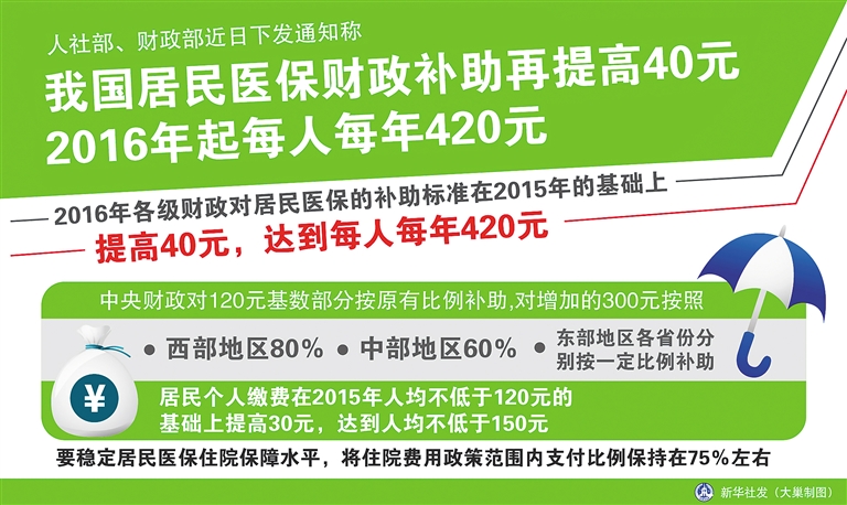 我国居民医保财政补助再提高40元 2016年起每人每年420元
