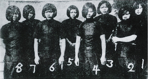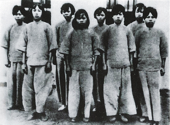 对照片拍摄的时间和地点,她们回忆说,1934年9月,她们被押解到“广州国民特别感化院”,这其实是一座专门关押政治犯的监狱。一天,她们下地干活,刚走到菜园,有个挎着照相机的人过来要给她们拍照。带他过来的狱卒要她们回去换上统一的囚服,之后她们就在监舍前边站成一排让他拍。王时香说,当时穿的衣服是“感化院”发给的囚服,是用“斜赤布”(一种灰白色的粗布)缝制的。王时香的说法与照片上的实际情况完全吻合。后来她们听说,这张照片在好几家报刊上登出来了。
